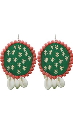 Thoughtfully curated, this set seamlessly marries the allure of green hues with the intricate detailing of shell work. The necklace and earrings harmonize effortlessly, allowing you to infuse your ensemble with a burst of artistic charm and natural elegance.