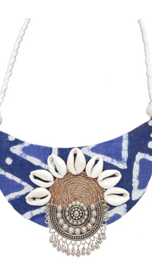 Celebrate the union of traditional materials and contemporary design with this exceptional set that showcases the beauty of indigo and the charm of shell work. Carry a piece of artistic craftsmanship and cultural heritage with you, enhancing your attire and making a statement that echoes your appreciation for timeless elegance.
