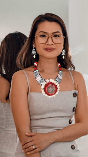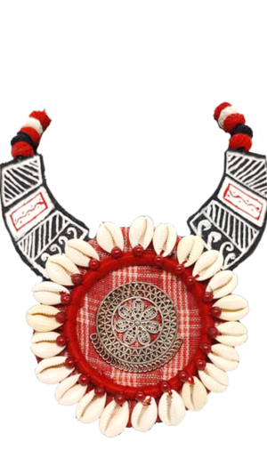 Embrace divine elegance with our Maa Durga Necklace and Earrings Set. Handcrafted with intricate jute and shell work, this ensemble pays homage to the goddess’s strength. Make a statement, infusing your style with spiritual grace and coastal charm. Perfect for both devotion and adornment.