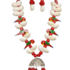 The centerpiece of the necklace features a beautifully carved wooden parrot, its intricate detailing brought to life with a mesmerizing oxidised finish that adds depth and character. Surrounding the parrot are an array of multicolour beads, each carefully selected to complement the overall design, creating a harmonious and eye-catching arrangement.