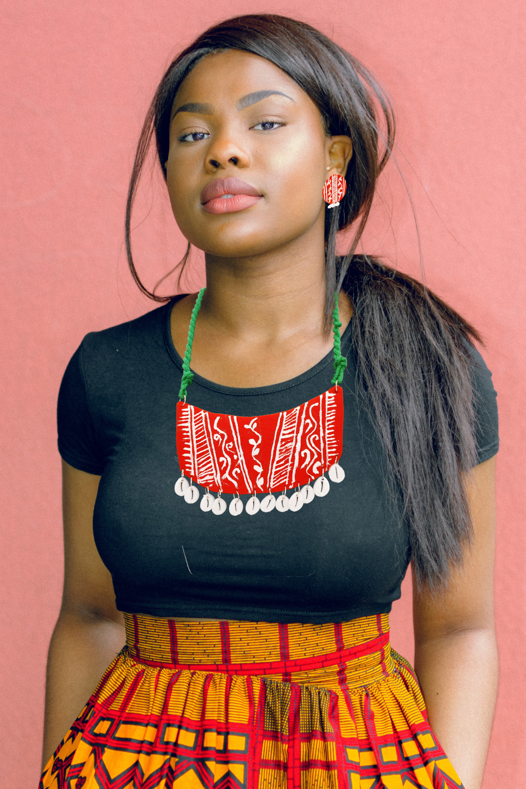 Introducing our exquisite Red Designer Necklace and Earrings Set, a true embodiment of artistic flair and contemporary elegance. Meticulously handcrafted, this ensemble showcases intricate shell work that adds a touch of natural allure to its bold red tones.