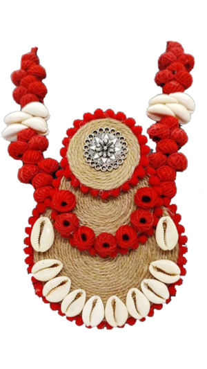 Experience a captivating fusion of nature’s beauty and artistic craftsmanship with our Red Jute Necklace and Earrings Set. Handcrafted to perfection, this ensemble showcases the intricate art of shell work intertwined with vibrant red jute, creating a stunning accessory that exudes both elegance and coastal charm.