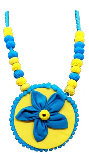 Whether you’re drawn to the beauty of nature’s palette, seek to express your vibrant personality, or simply appreciate unique accessories, the Multicolour Floral Work Sky Blue and Yellow Necklace and Earrings Set offers a statement of style that’s both captivating and versatile. The interplay of serene blue and lively yellow hues creates a look that is both charming and artistically intriguing.
